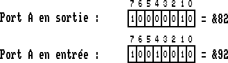 En fait, la description que je viens de faire traite du PPI en général, mais sur CPC, le port C est utilisé généralement en sortie et le port B en entrée. Seul le port A est utilisé en entrée et en sortie. On a donc plus que deux cas sur le port &F7xx :