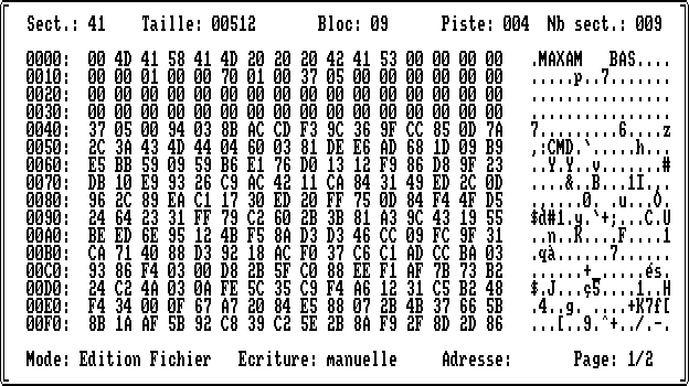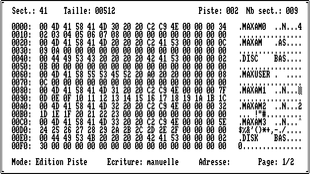 • secteur1=((2*bloc mod 9)+1) or masque où “masque” sera &C0 pour le format DATA et &41 pour le format VENDOR ou SYSTEM.