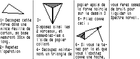 Attendez voir, je cherche dans mon gros grimoire… Ah, j'ai trouvé quelque chose… Mais attention, ce qui va suivre est exceptionnel, en effet, je vais vous dévoiler l'un des secrets le plus extraordinaire qui ai jamais été délivré à la société ; non, vous ne rêvez pas, je vais vous dévoiler les plans de fabrication du fantastique SPECTROCIDE !